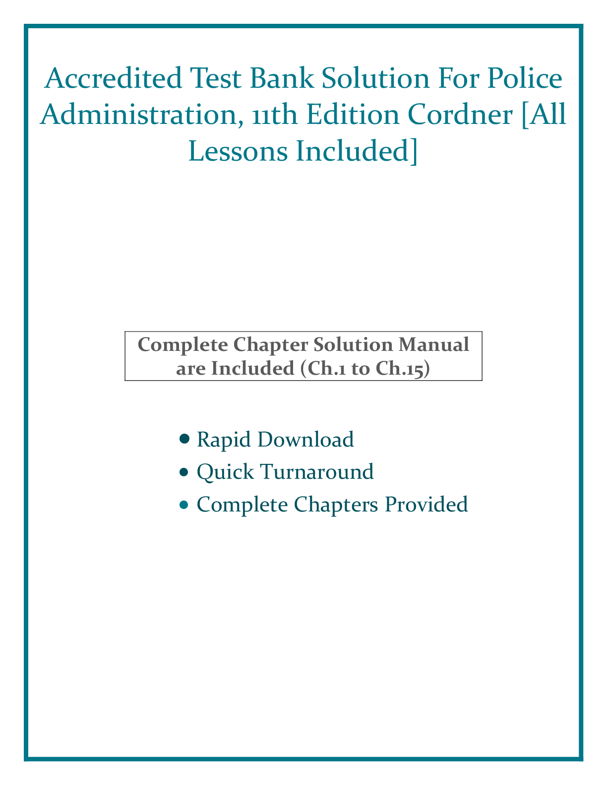 Business Administration > TEST BANKS > Test Bank Solution For Police Administration, 11th Edition Cordner [All Lessons Included] A+ (All)