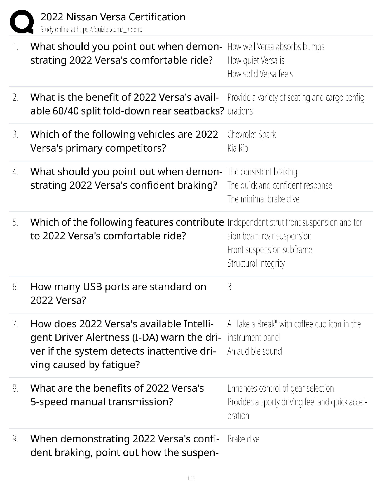 Business Administration > QUESTIONS & ANSWERS > 2022 Nissan Versa Certification / ProMaster Exam / 2025 Updated Guide / Score 100% Test Bank (All)