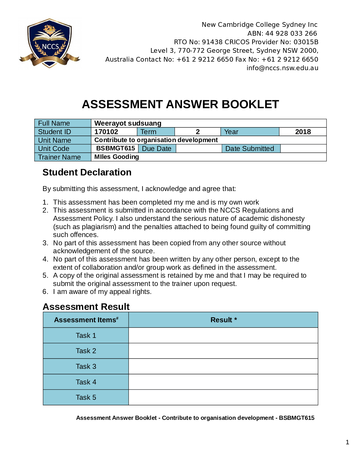 Business Administration > EXAM > Acting Sub Lt. Weerayot SUDSUANG - Assessment Answer Booklet (All)