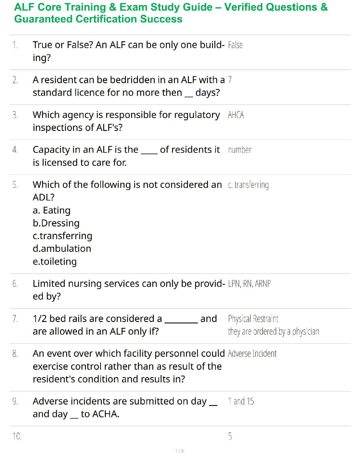 Business Administration > QUESTIONS & ANSWERS > ALF Core Training & Exam Study Guide – Verified Questions & Guaranteed Certification Success (All)