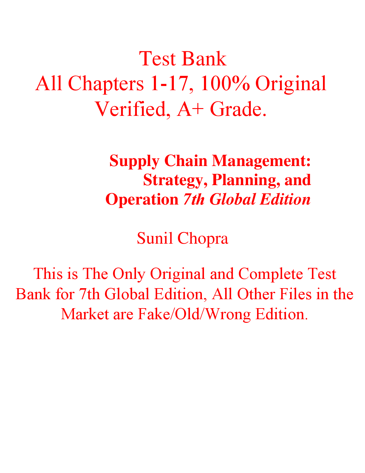 Business Administration > TEST BANKS > Test Bank for Supply Chain Management, Strategy, Planning, and Operation 7th Global Edition By Sunil Chopra (All)