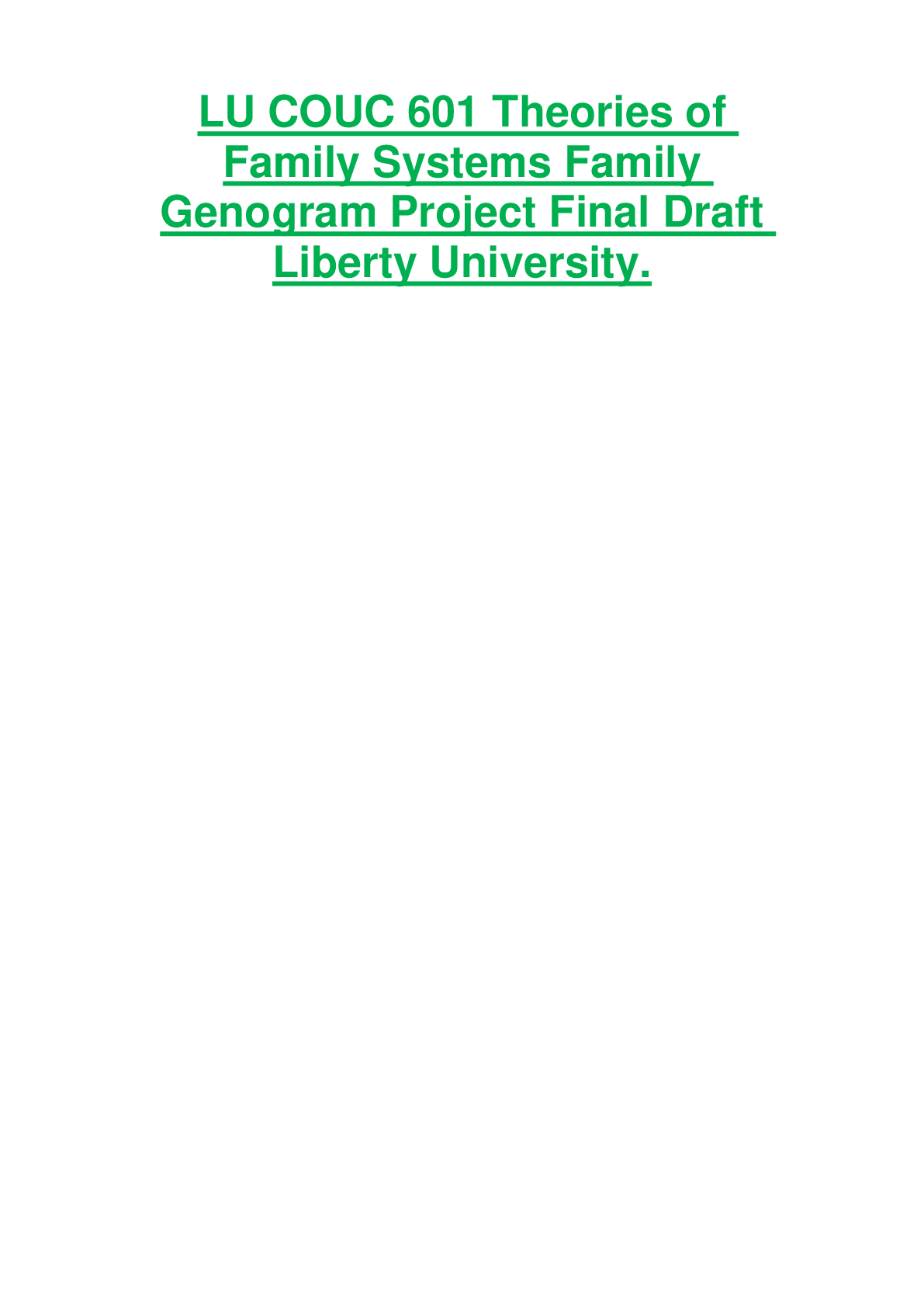 Business Administration > EXAM > LU COUC 601 Theories of Family Systems Family Genogram Project Final Draft Liberty University. (All)