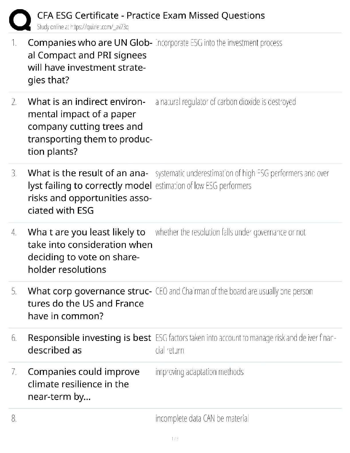 Leadership > QUESTIONS & ANSWERS > CFA ESG Certificate / Practice Exam Missed Questions Guide / 2025 Update / Score 100% (All)