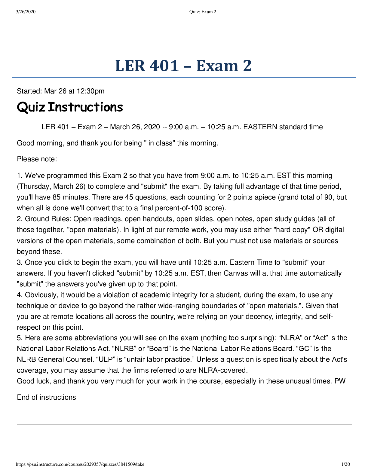 Leadership > QUESTIONS & ANSWERS > Pennsylvania State University: LER 401: Exam 2 (All)