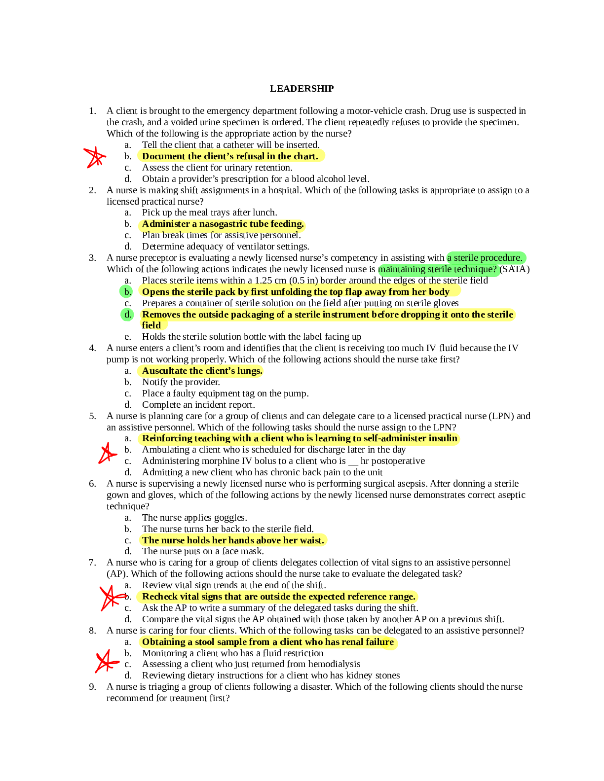 Leadership > HESI > Leadership Management Exit HESI Updated 2021 (All)