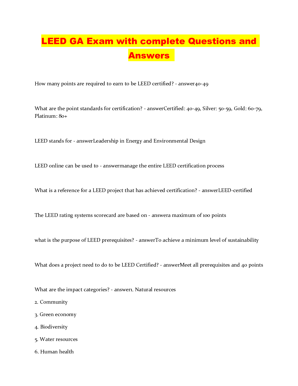 Leadership > QUESTIONS & ANSWERS > LEED GA Exam with complete Questions and Answers (All)