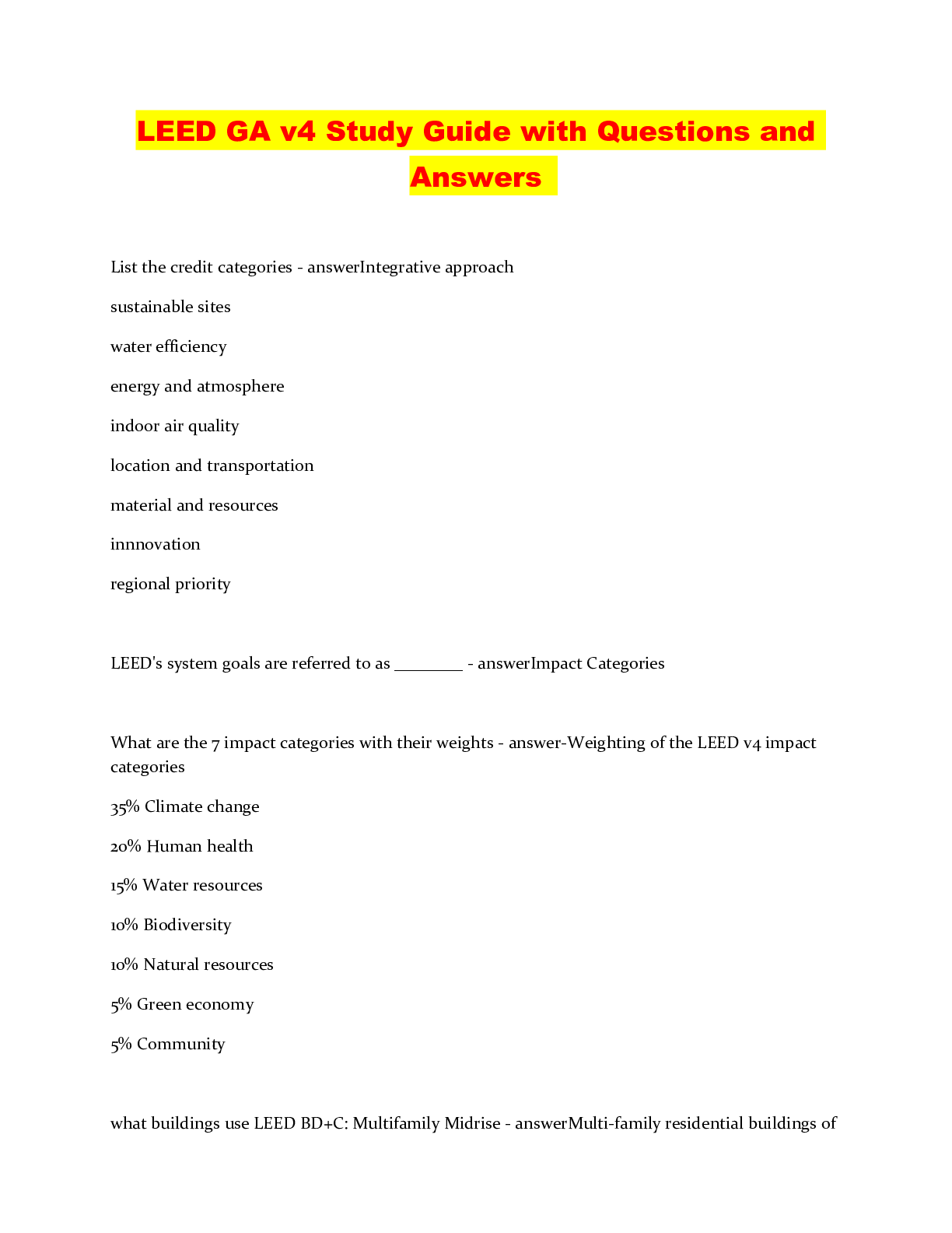 Leadership > QUESTIONS & ANSWERS > LEED GA v4 Study Guide with Questions and Answers (All)