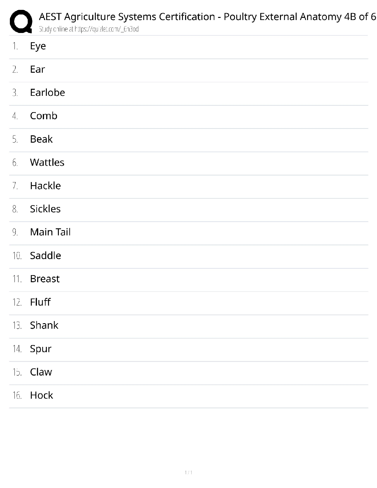 Agricultural Studies > QUESTIONS & ANSWERS > AEST Agriculture Systems Certification / Poultry External Anatomy 4B of 6 / 2025 Update / Score 100% (All)