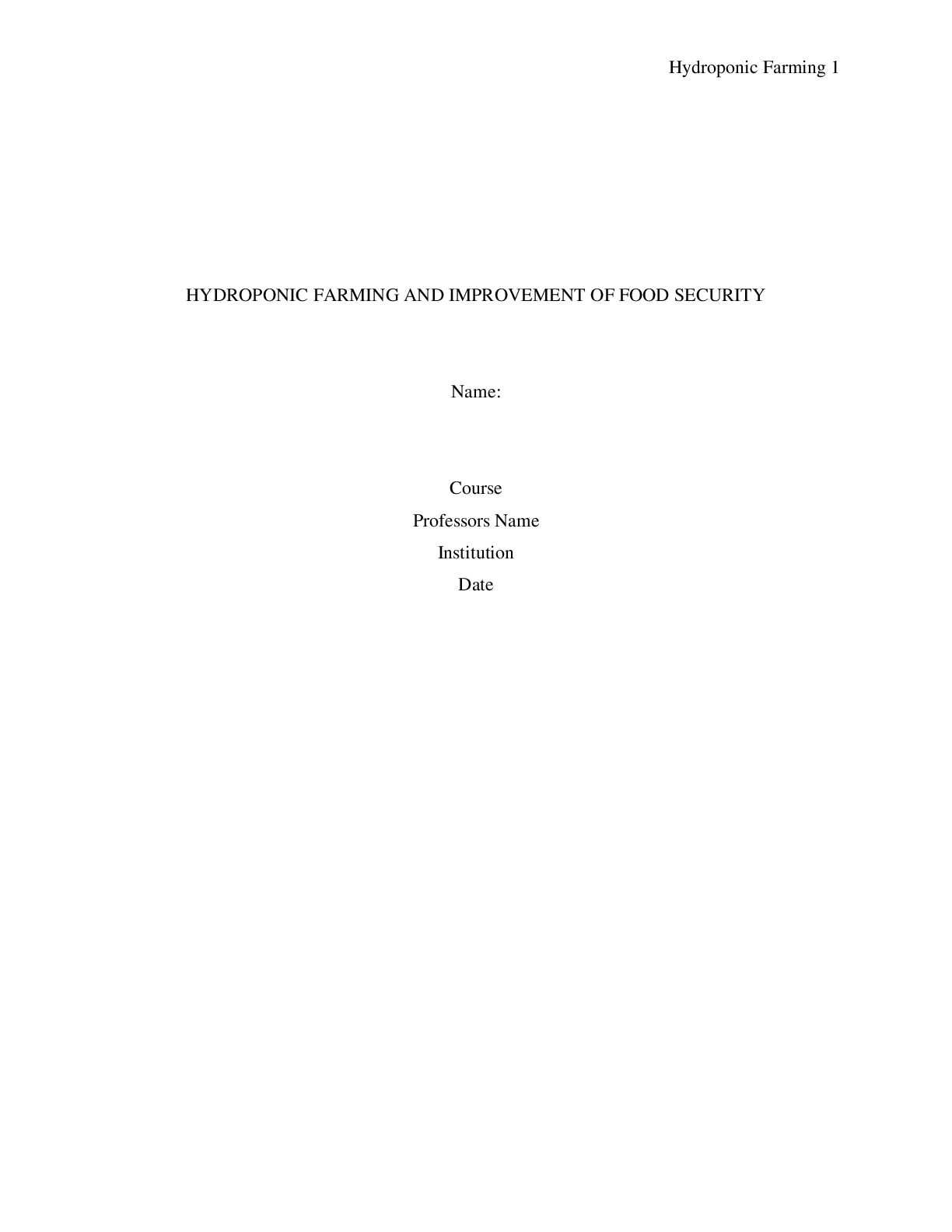 Agricultural Studies > ESSAY > HYDROPONIC FARMING AND IMPROVEMENT OF FOOD SECURITY (All)