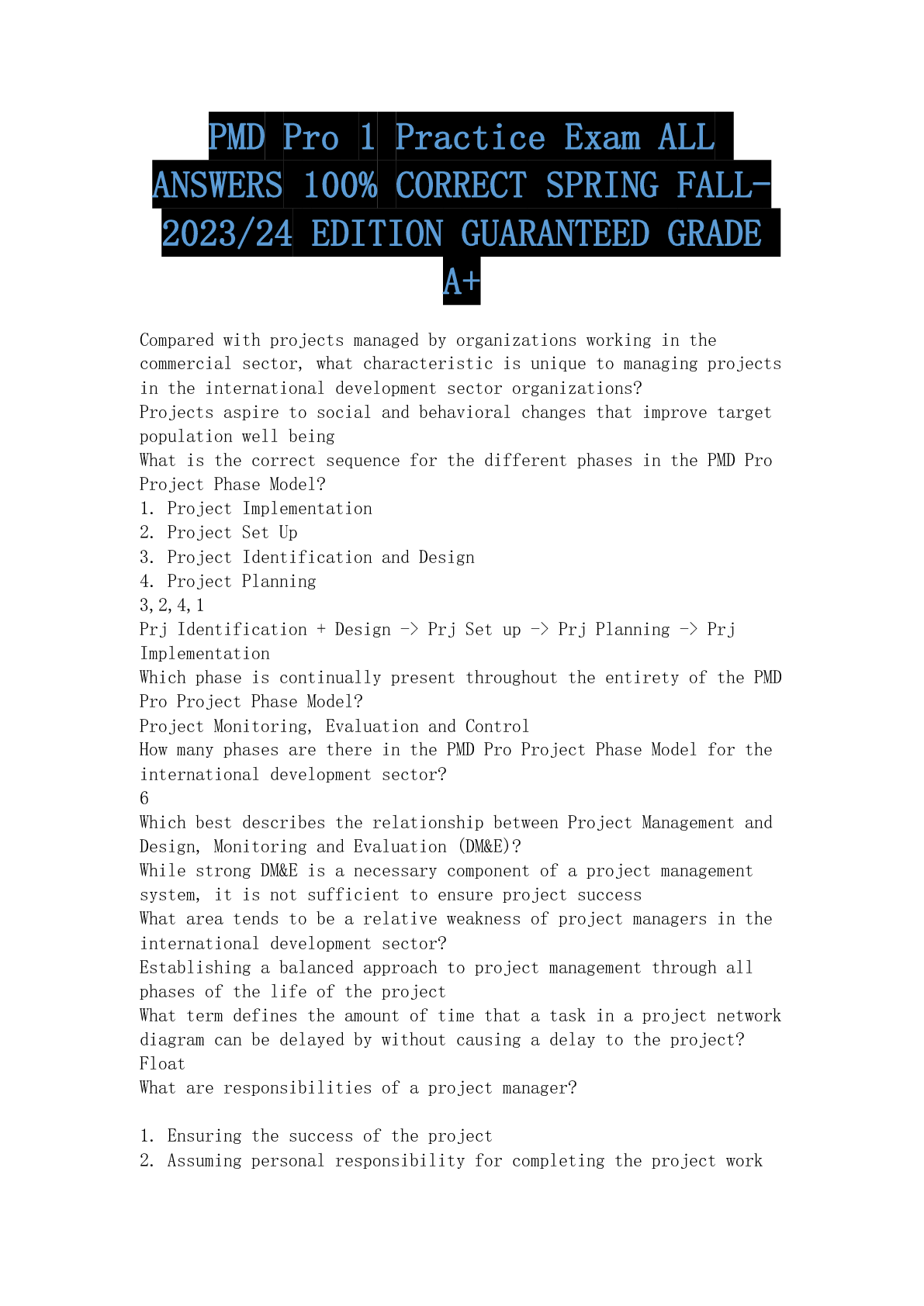 Project Management > EXAM > PMD Pro 1 Practice Exam ALL ANSWERS 100% CORRECT SPRING FALL-2023/24 EDITION GUARANTEED GRADE A+ (All)
