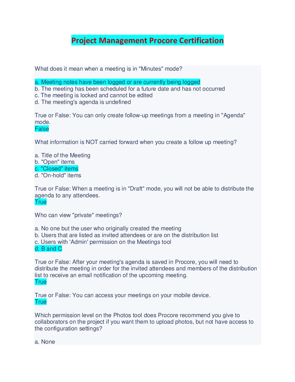 Project Management > EXAM > Project Management Procore Certification (2023/2024) (All)