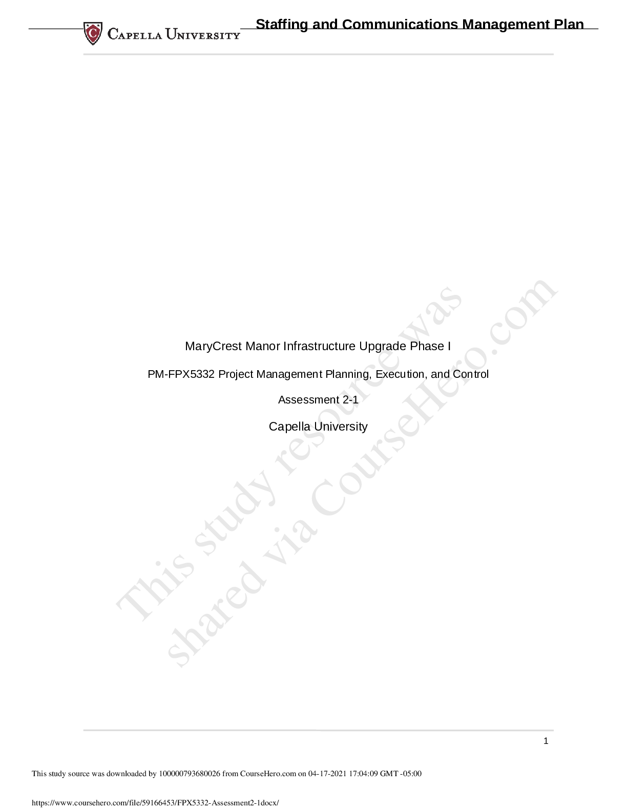Project Management > Research Paper > Staffing Management Plan Capella University - PM FPX 5332PM-FPX5332_TateDonald_Assessment 2-1 (All)