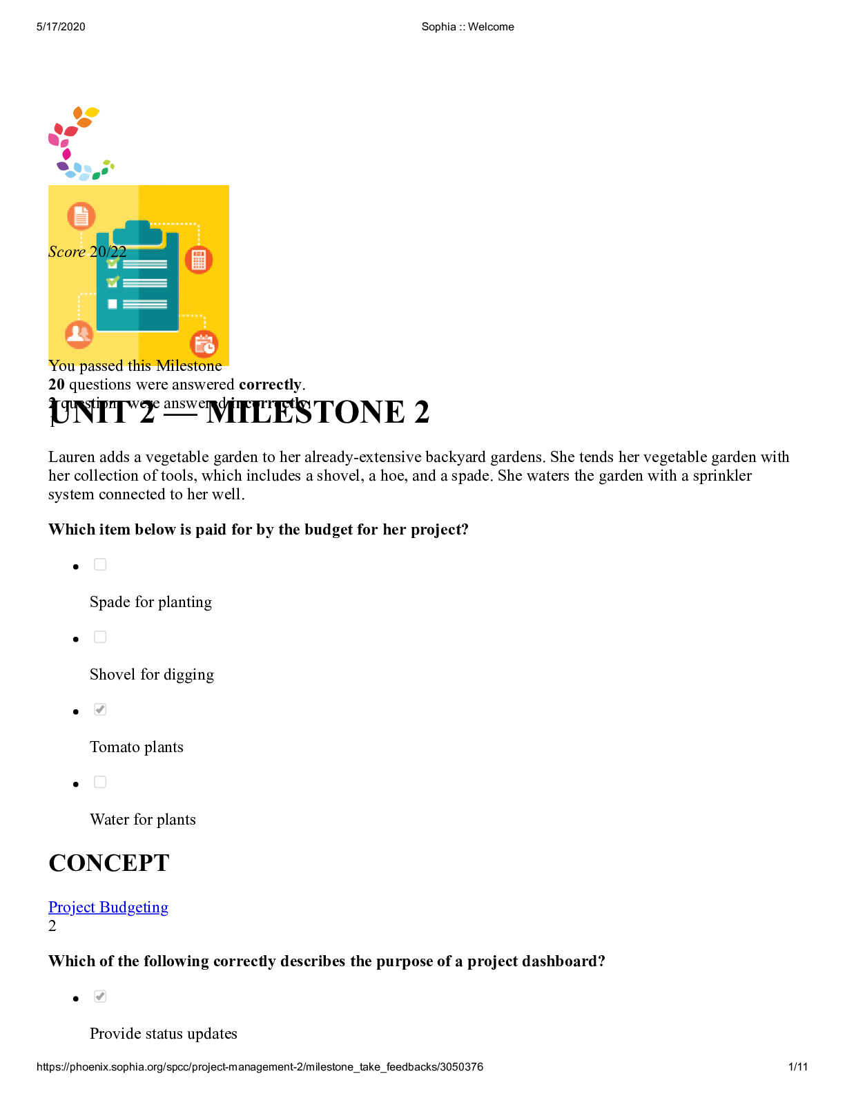 Project Management > SOPHIA Milestone > Project_Management_Competency_1_Practice_Milestone. RATED A (All)