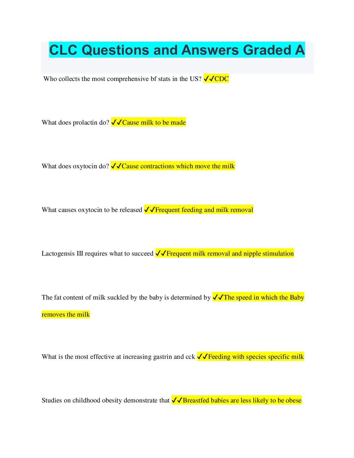 Counseling > QUESTIONS & ANSWERS > CLC Questions and Answers Graded A (All)