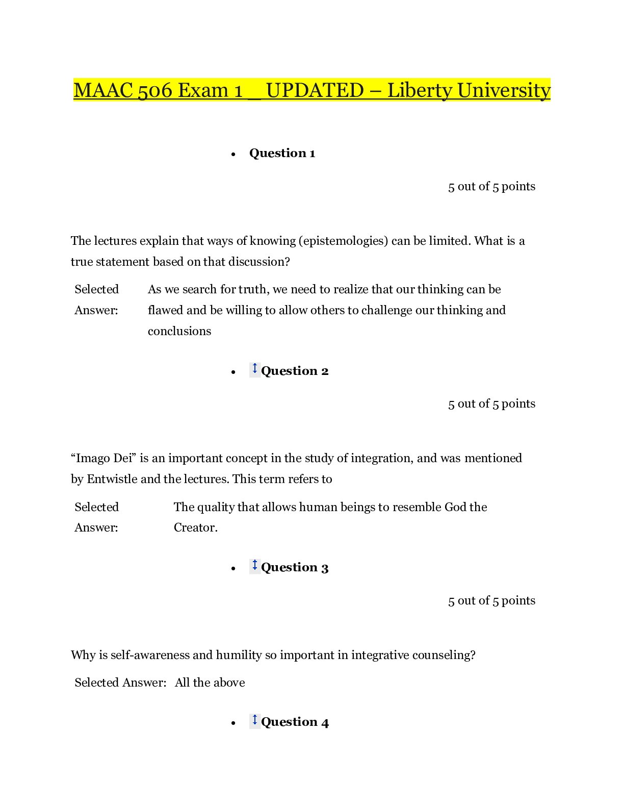 Counseling > EXAMs > Liberty University COUN 506 Exam 100% Correct Answers (All)