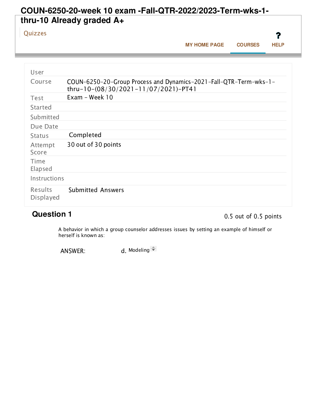 Counseling > EXAMs > COUN-6250-20-week 10 exam -Fall-QTR-2022/2023-Term-wks-1- thru-10 Already graded A+ (All)