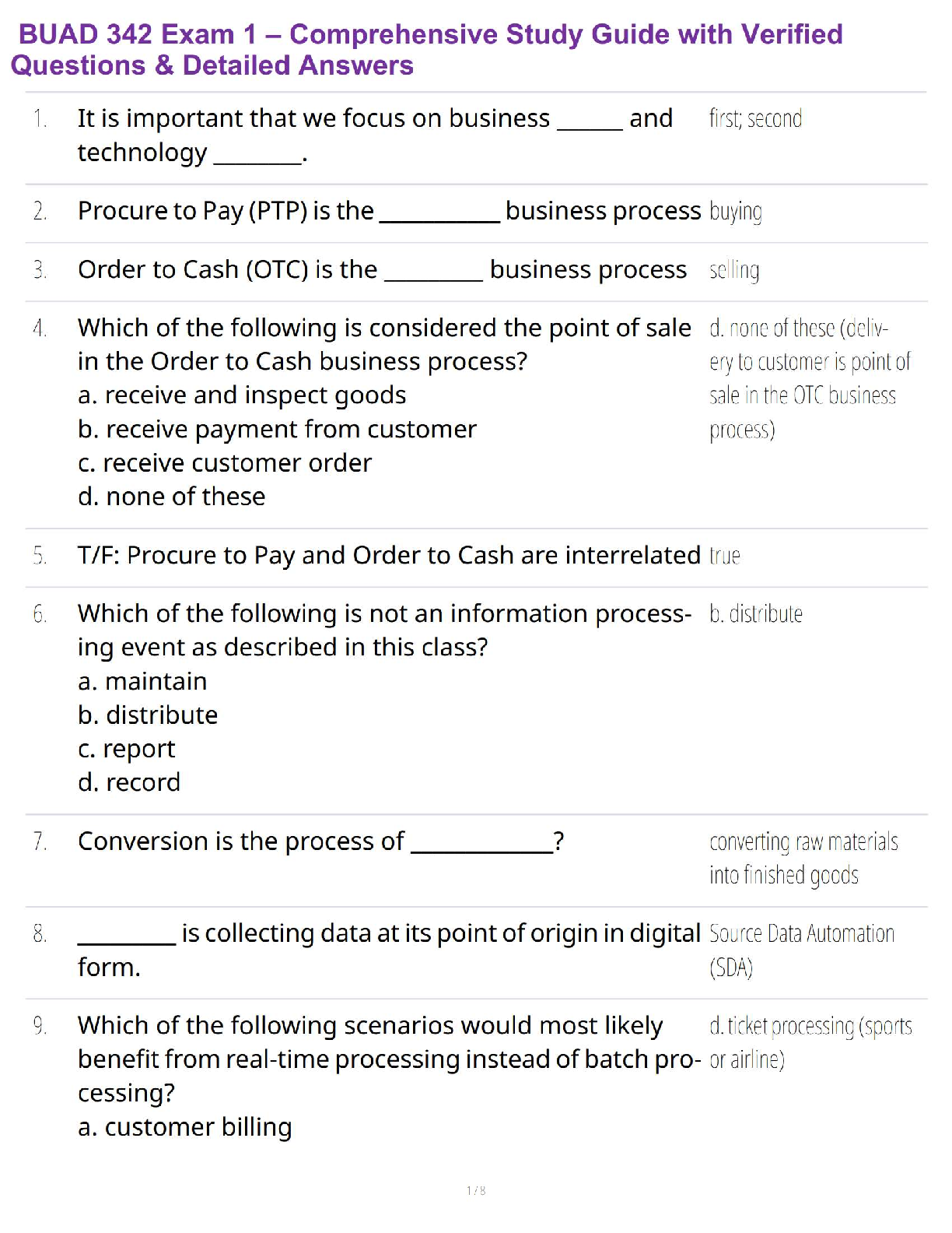 Business Analytics > EXAM > BUAD 342 Exam 1 – Comprehensive Study Guide with Verified Questions & Detailed Answers (All)