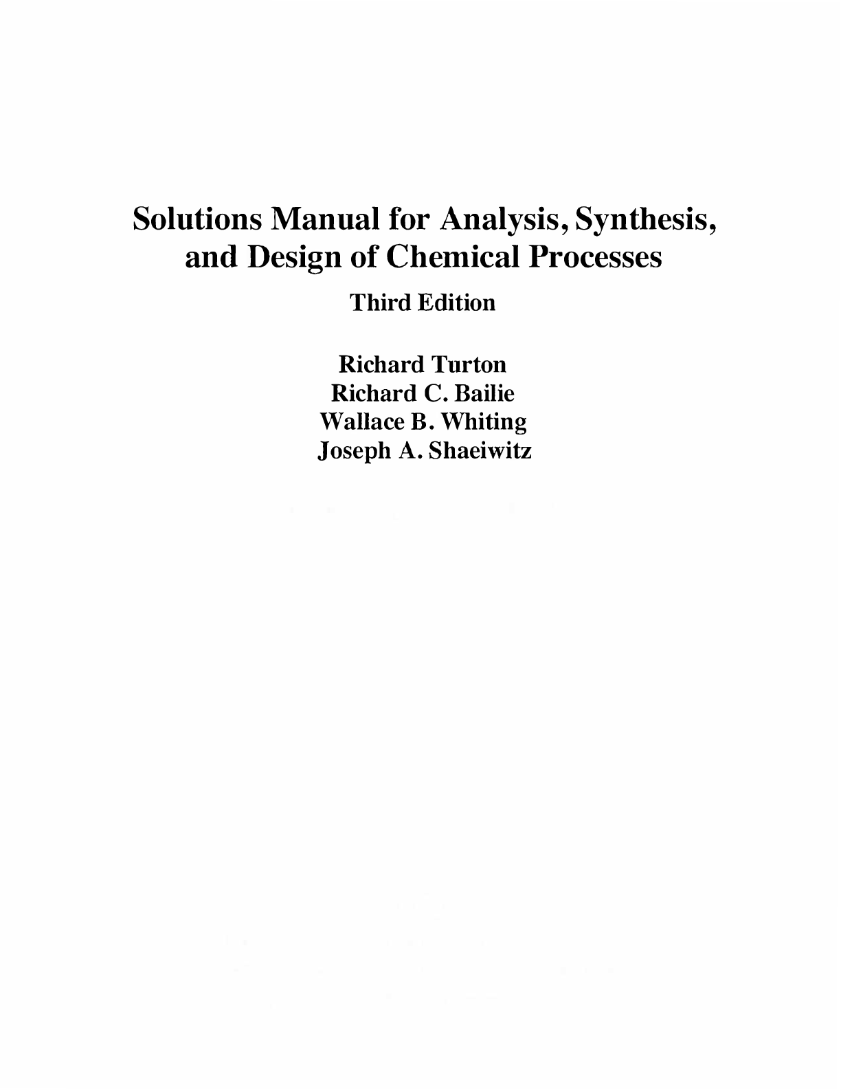 Business Analytics > eBook-PDF > Solution Manual For Analysis Synthesis and Design of Chemical Processes 3rd Edition By Turton Bailie Whiting Shaeiwitz (All)