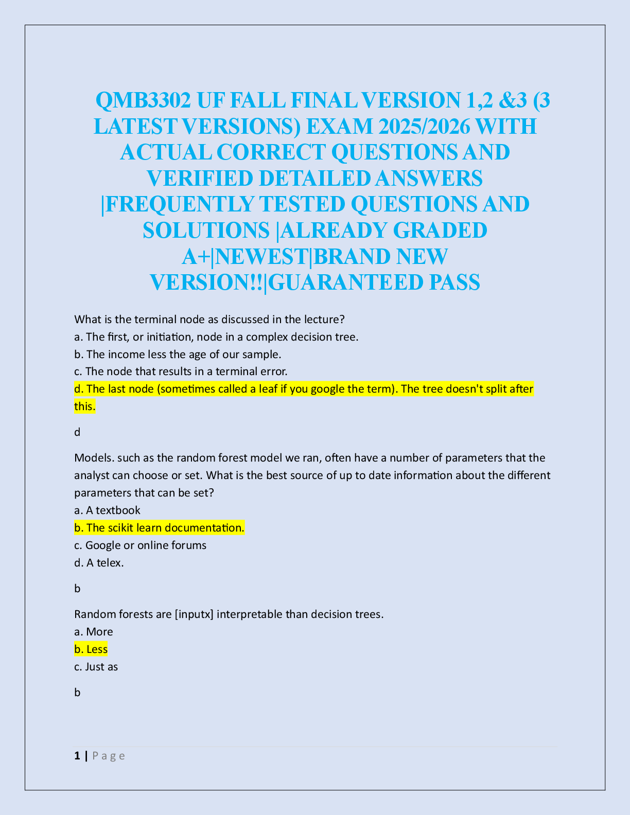Business Analytics > EXAM > QMB3302 UF FALL FINAL VERSION 1,2 &3 (3 LATEST VERSIONS) EXAM (All)