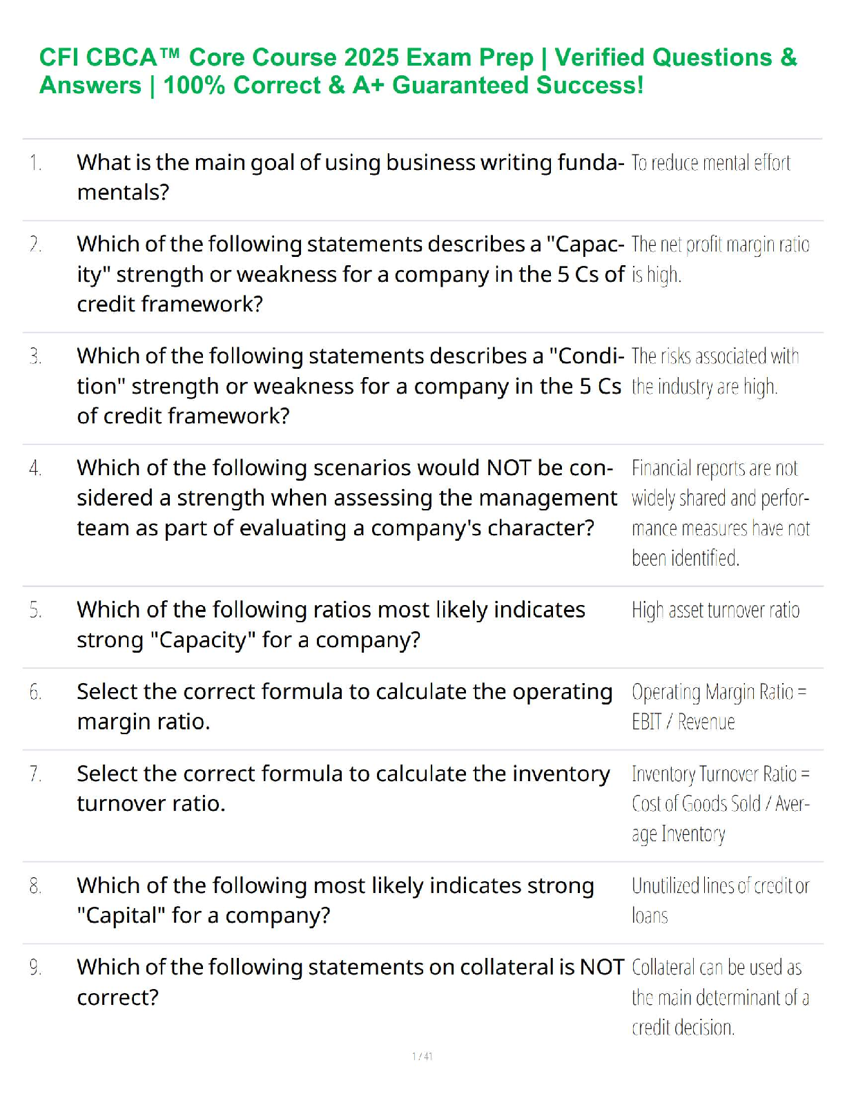 Business Analytics > QUESTIONS & ANSWERS > CFI CBCA™ Core Course 2025 Exam Prep | Verified Questions & Answers | 100% Correct & A+ Guaranteed Success! (All)