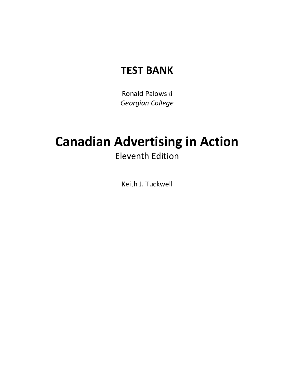 Business > TEST BANKS > Canadian Advertising in Action, 11e Keith J. Tuckwell (Test Bank) (All)