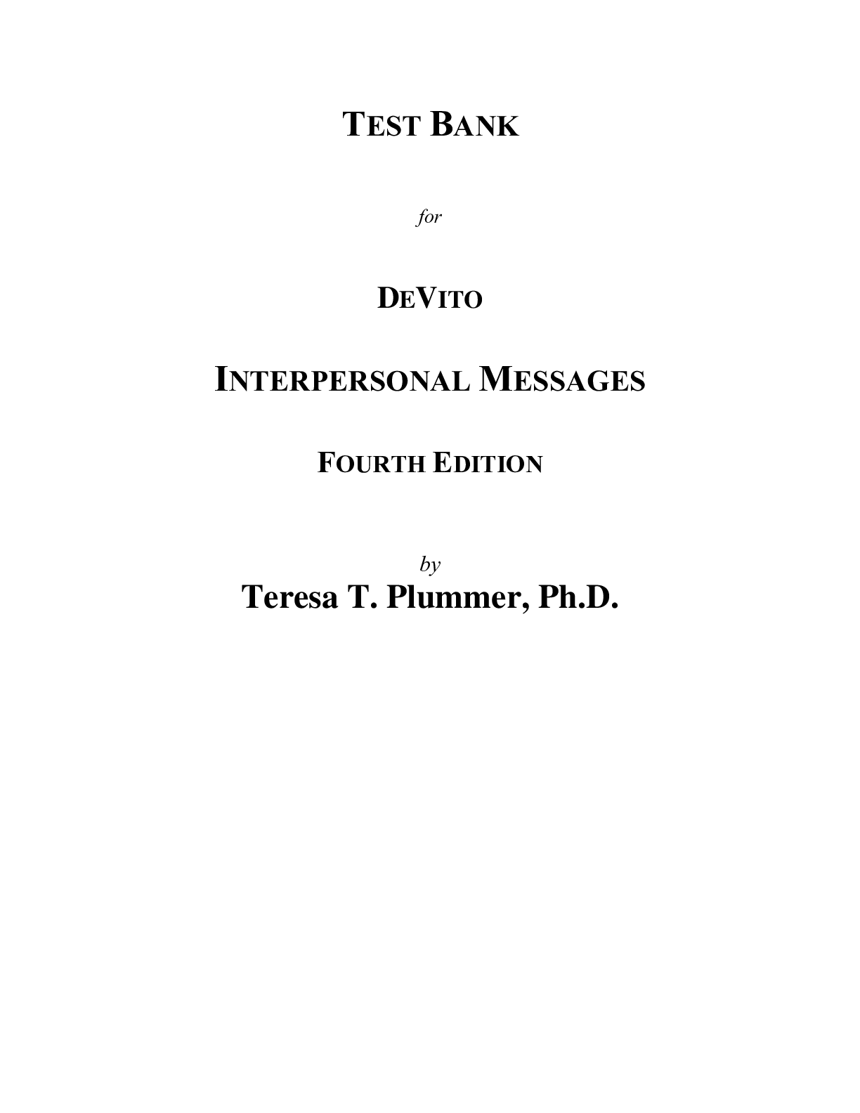 Business > TEST BANKS > Test Bank For Interpersonal Messages 4th Edition By Joseph DeVito (All Chapters, 100% Original Verified, A+ Grade) (All)