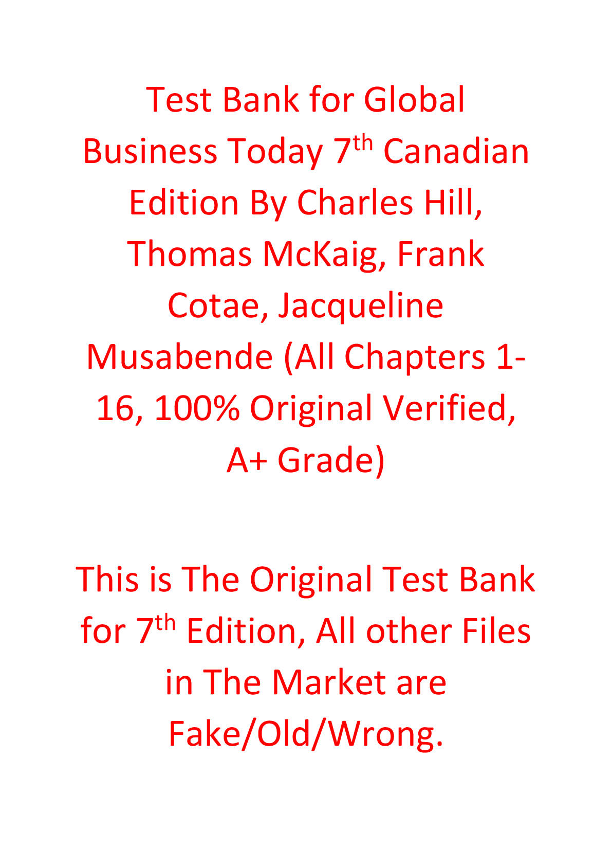 Business > TEST BANKS > Test Bank For Global Business Today 7th Canadian Edition By Charles Hill, Thomas McKaig, Frank Cotae, Jacqueline Musabende (All)