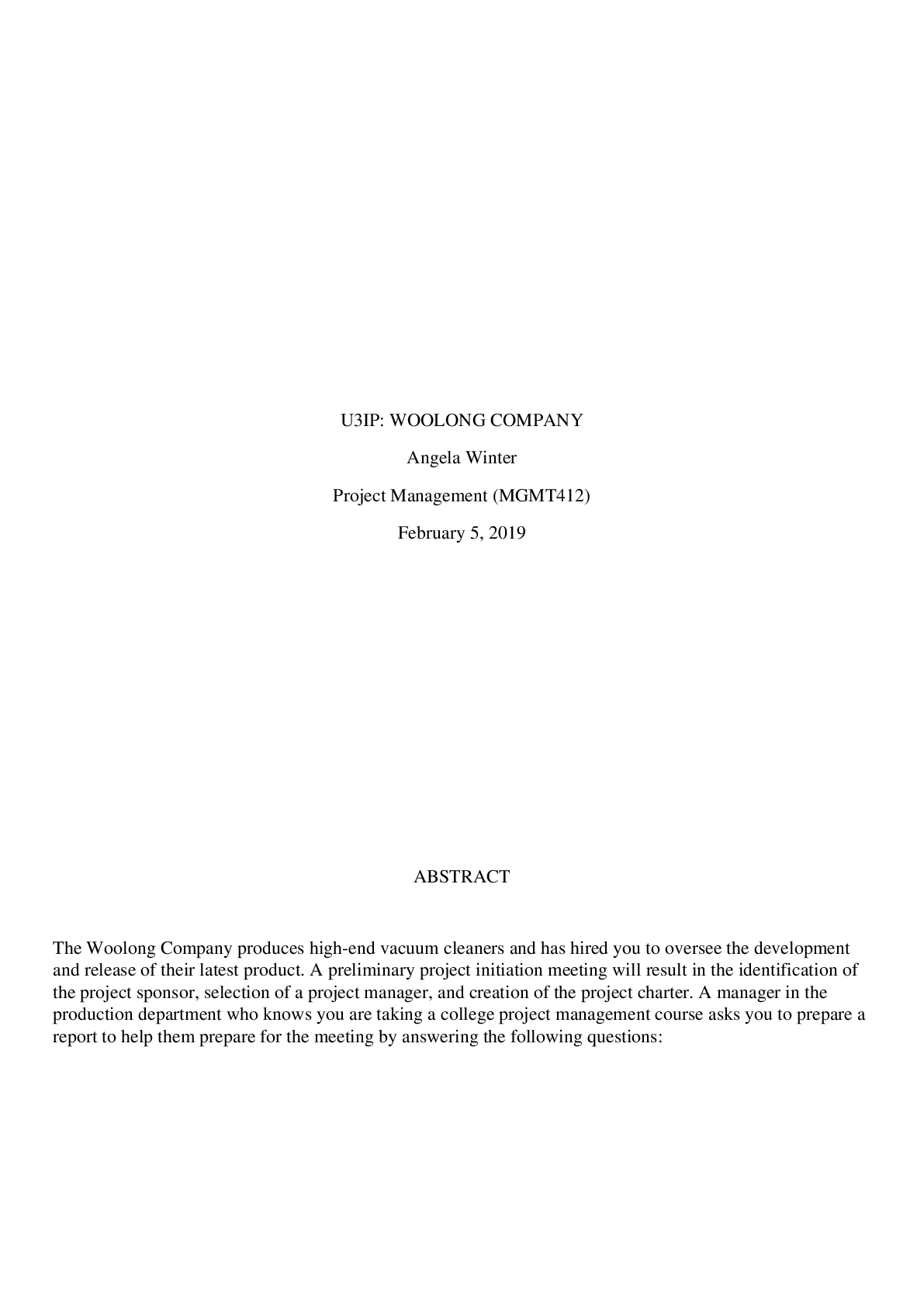 Business > QUESTIONS & ANSWERS > The Woolong Company produces high-end vacuum cleaners and has hired you to oversee the development (All)