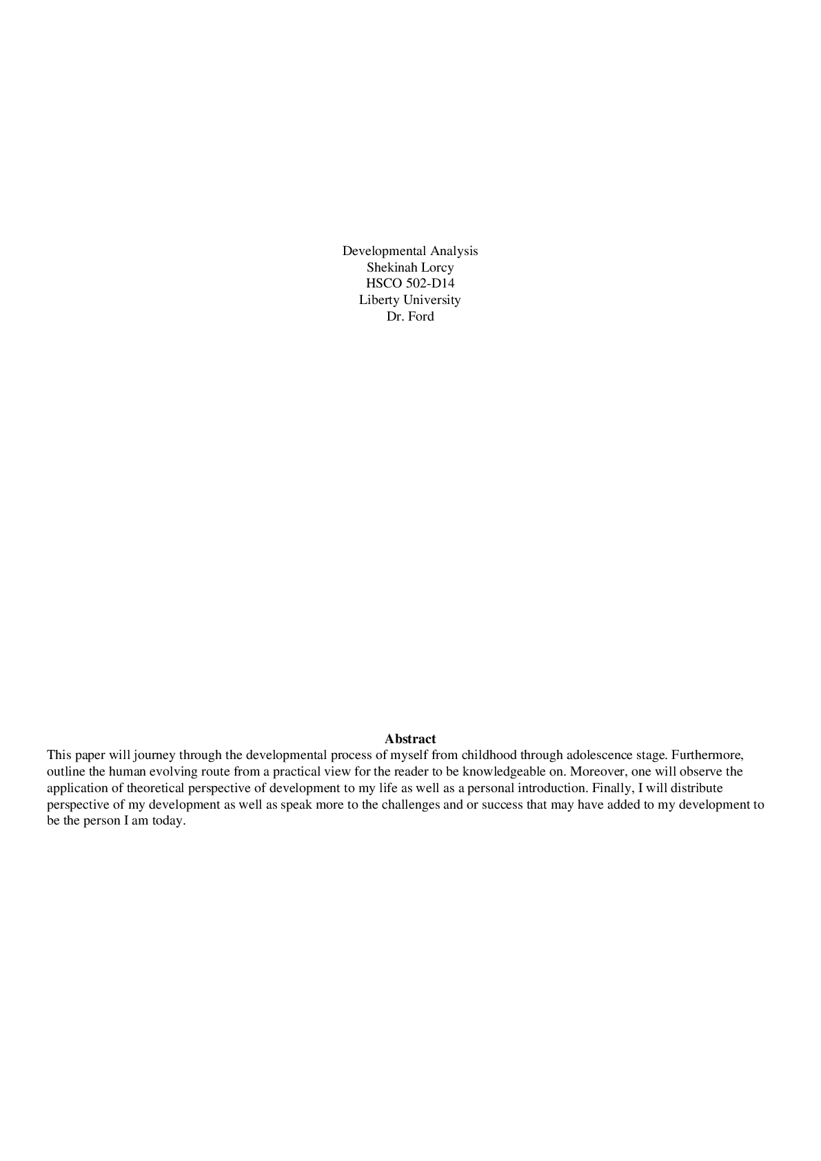 Business > QUESTIONS & ANSWERS > Developmental Analysis: Part 1 Instructions Childhood – Adolescence (All)