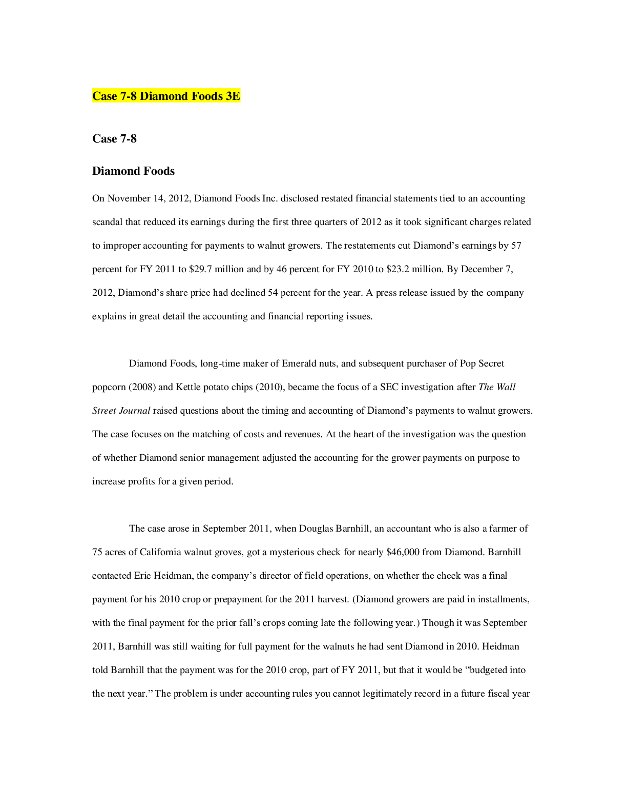 Business > EXAM > BUS 375-2020-Assignment Case Study 78-DiamondFoods.pdf-Managerial Marketing (BUS 375) (All)