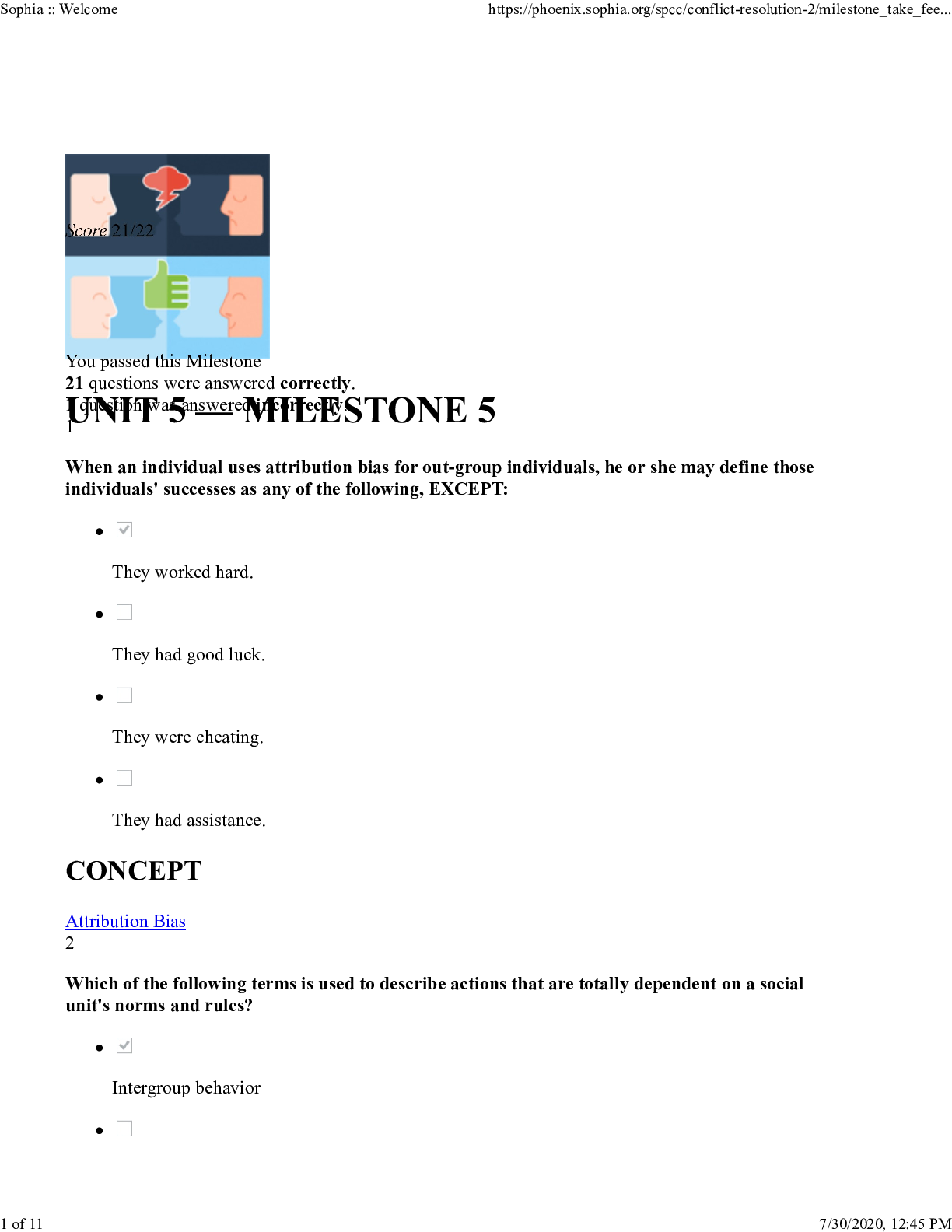 Business > EXAM > BUS 526 Sophia Conflict Final Milestone 2020 – Strayer University | BUS526 Sophia Conflict Final Milestone 2020 – A Grade (All)