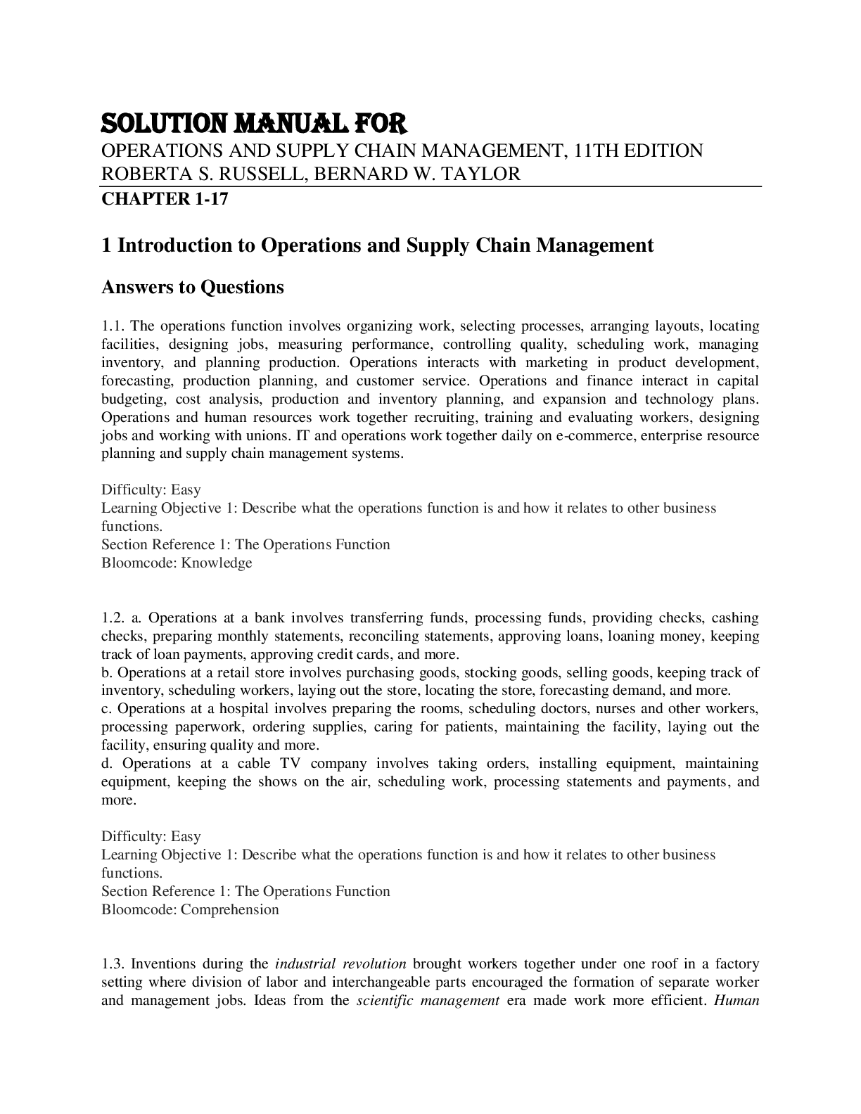 Business > SOLUTIONS MANUAL > Solution Manual For Operations and Supply Chain Management, 11th Edition by Roberta S. Russell, Bernard W. Taylor Chapter 1-17 (All)