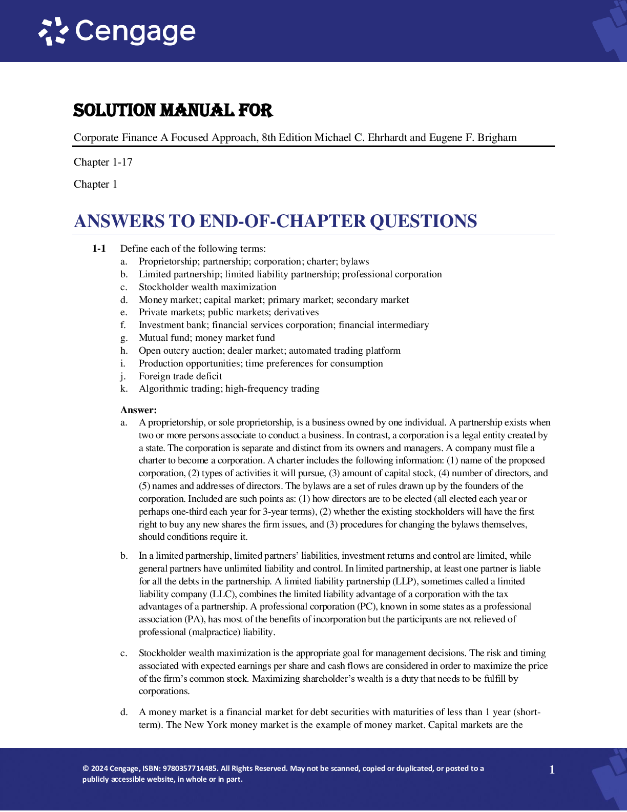 Business > SOLUTIONS MANUAL > Solution Manual for Corporate Finance A Focused Approach, 8th Edition Michael Ehrhardt and Eugene Brigham (All)