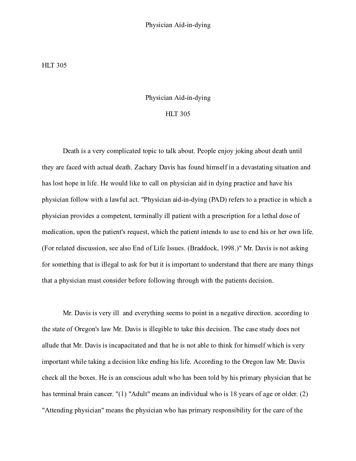 Business > CASE STUDY > Physician_Aid.docx HLT 305 Physician Aid-in-dying HLT 305 Death is a very complicat (All)