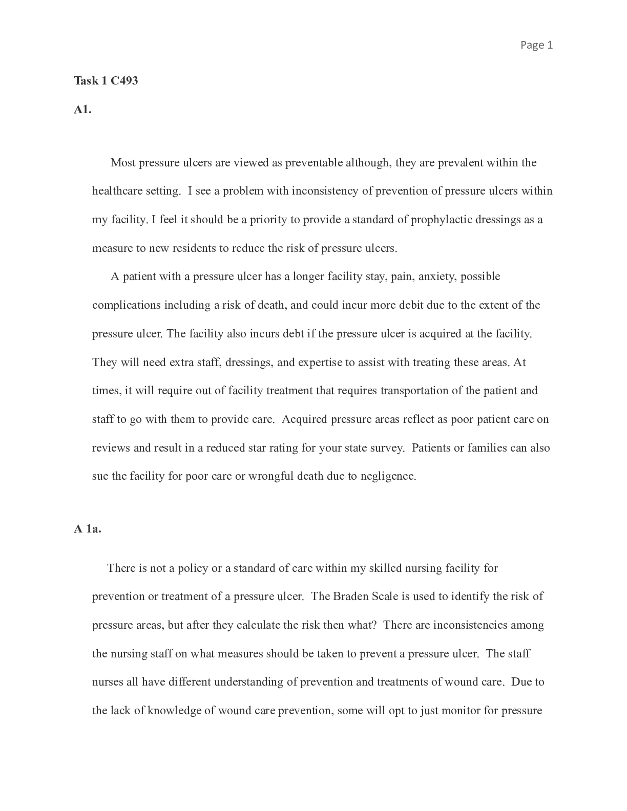 Business > CASE STUDY > task1 C-493 apa.docx Task 1 C493 A1. Most pressure ulcers are viewed as preventable alt (All)