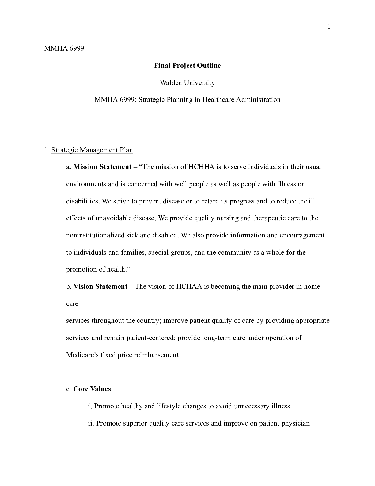 Business > CASE STUDY > WK2Proj Strategic Planning in Healthcare R.doc MMHA 6999 Final Project Outline Walden (All)