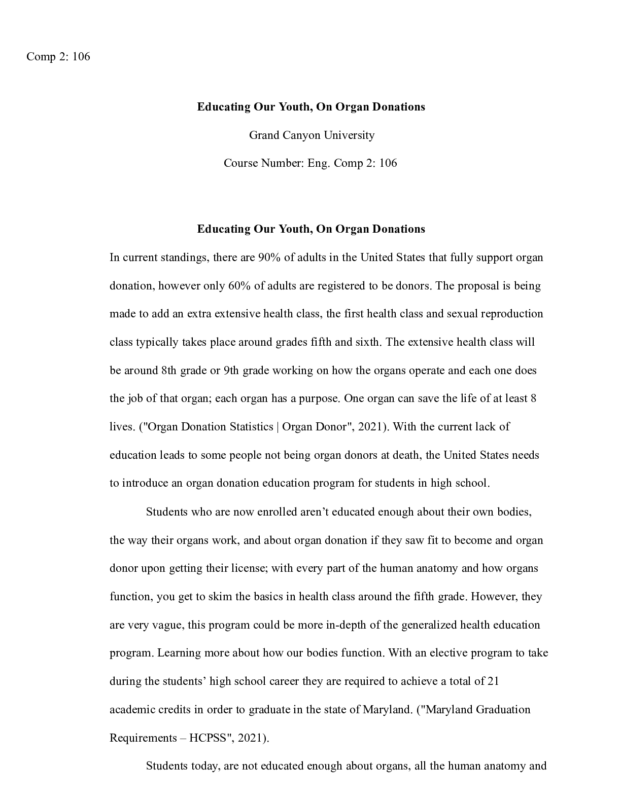 Business > CASE STUDY > English_Proposal_Final_Rough_Draft.docx(1) Comp 2: 106 Educating Our Youth, On Organ Don (All)