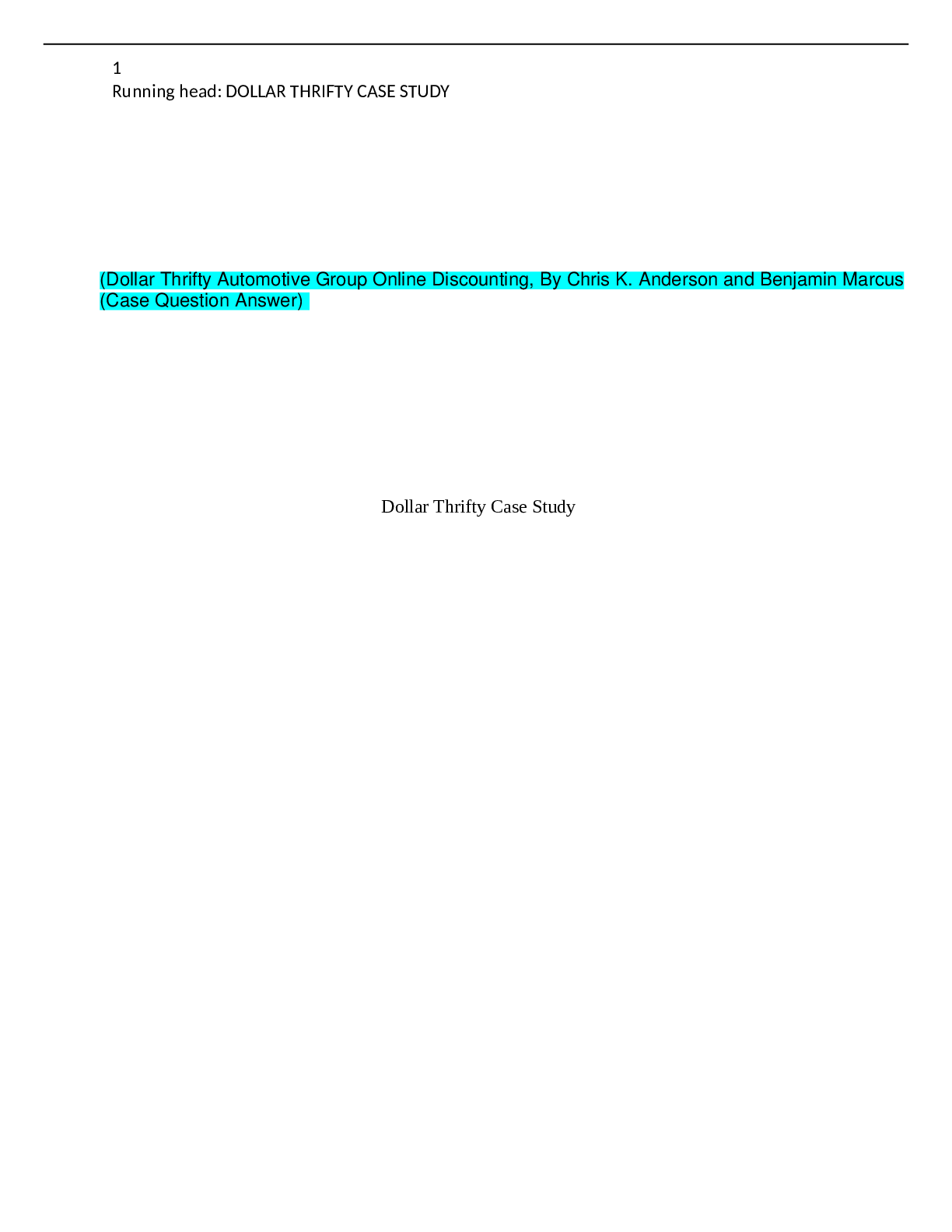 Business > CASE STUDY > Dollar Thrifty Automotive Group Online Discounting, By Chris K. Anderson and Benjamin Marcus (Case Question Answer) (All)