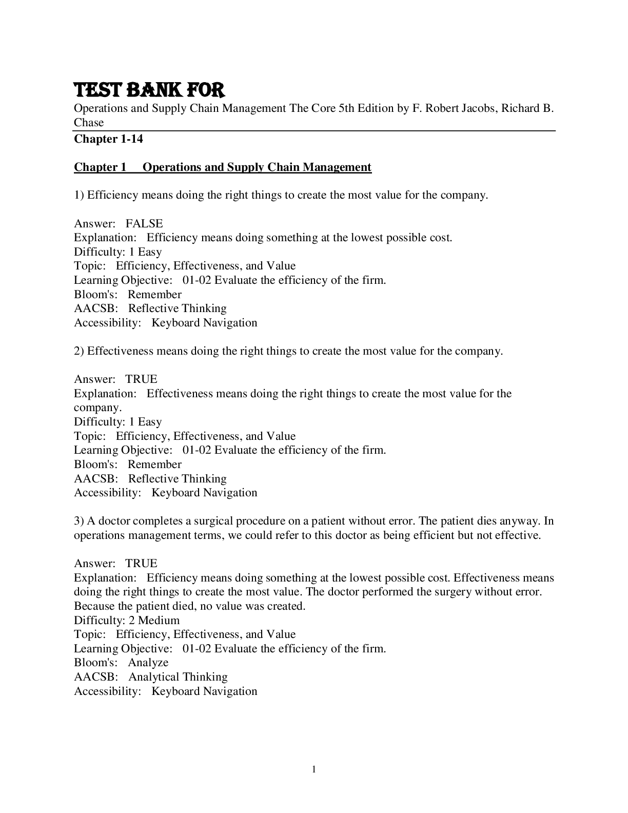 Business > TEST BANKS > Test Bank For Operations and Supply Chain Management The Core 5th Edition by F. Robert Jacobs Chapter 1-14 (All)