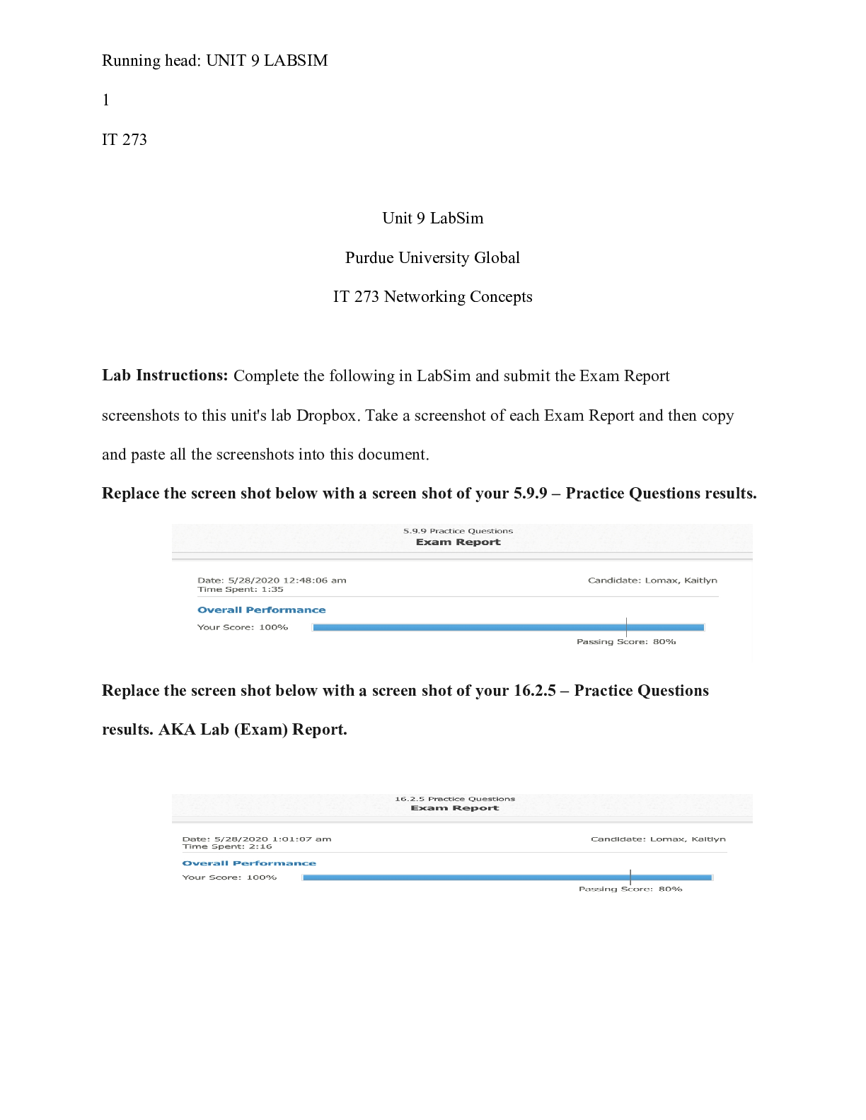 Business > CASE STUDY > IT273 Unit 9 Lab.docx IT 273 Unit 9 LabSim Purdue University Global IT 273 Networking (All)
