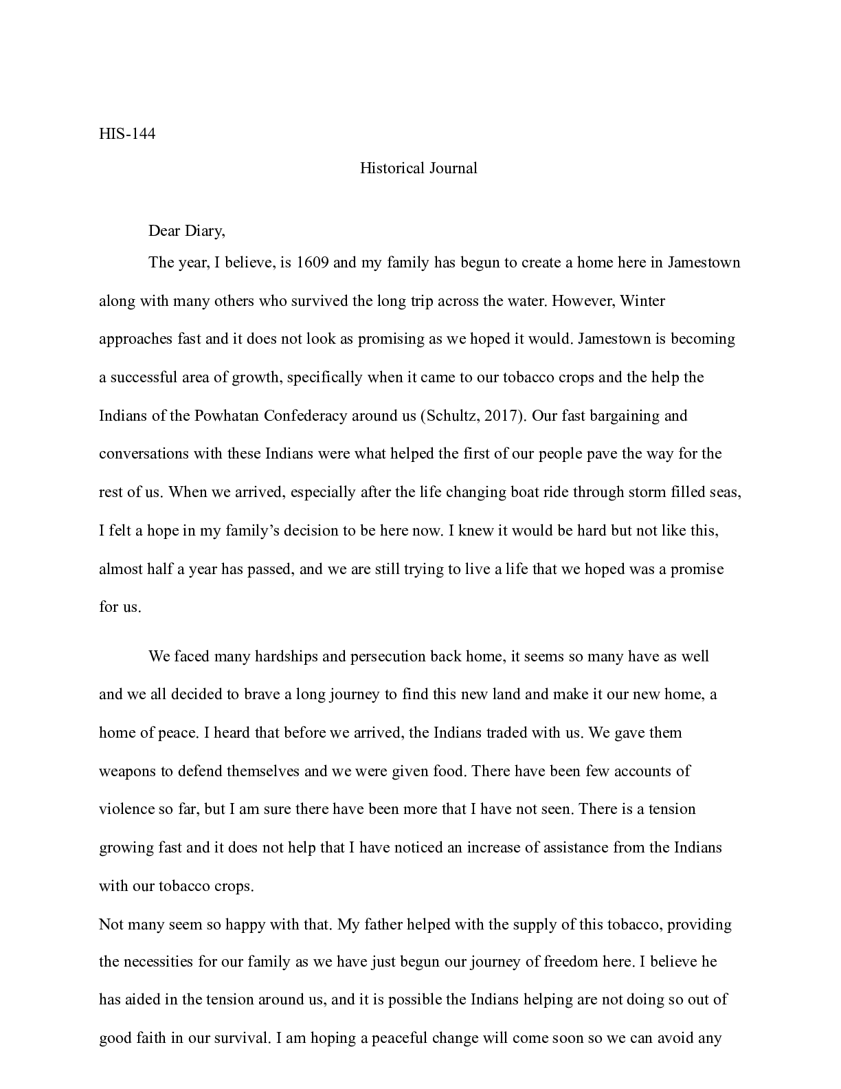 Business > CASE STUDY > Historical_Journal__.docx(1) HIS-144 Historical Journal Dear Diary, The year, I beli (All)