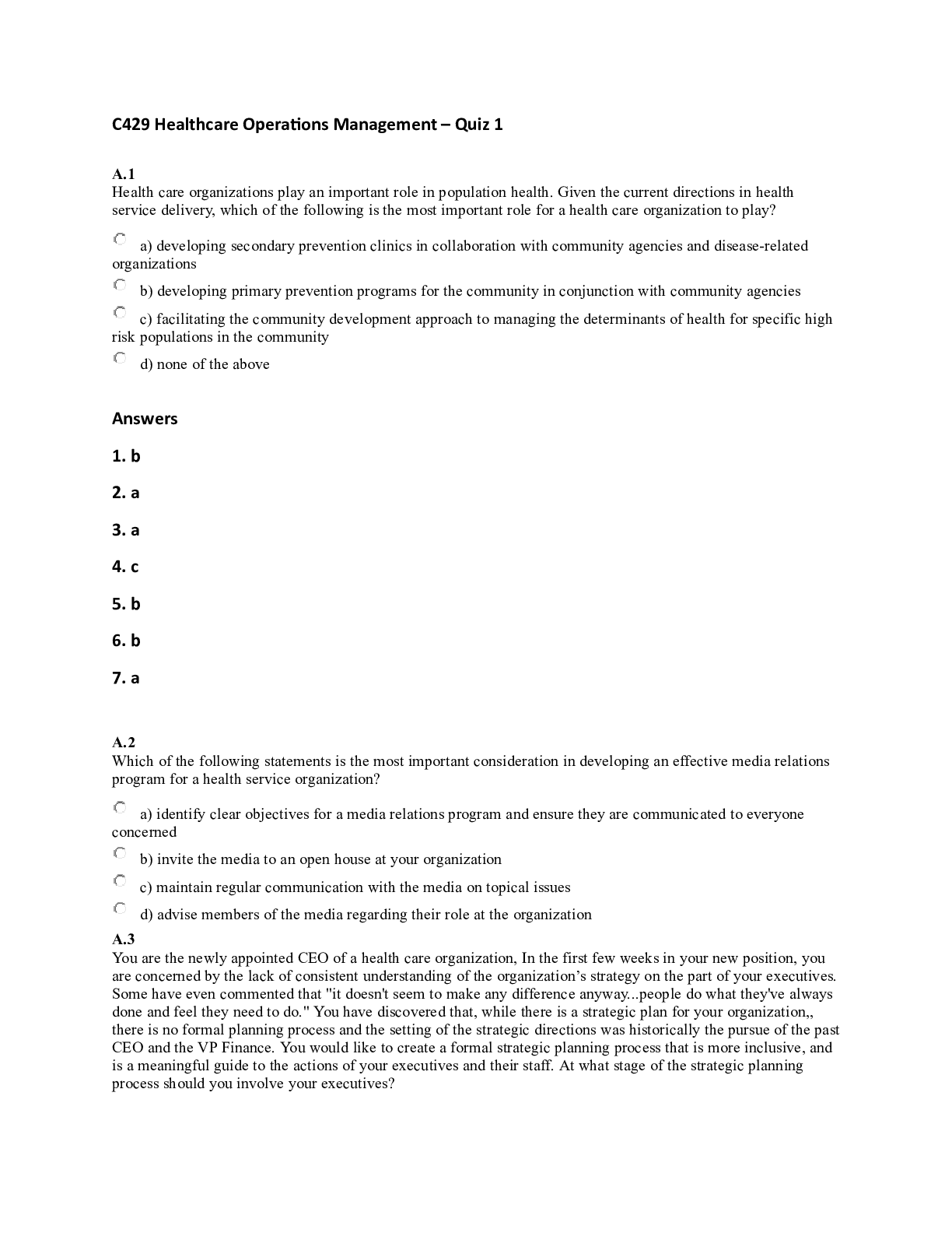 Business > CASE STUDY > Health care organizations play an important role in population health. Given the current d (All)