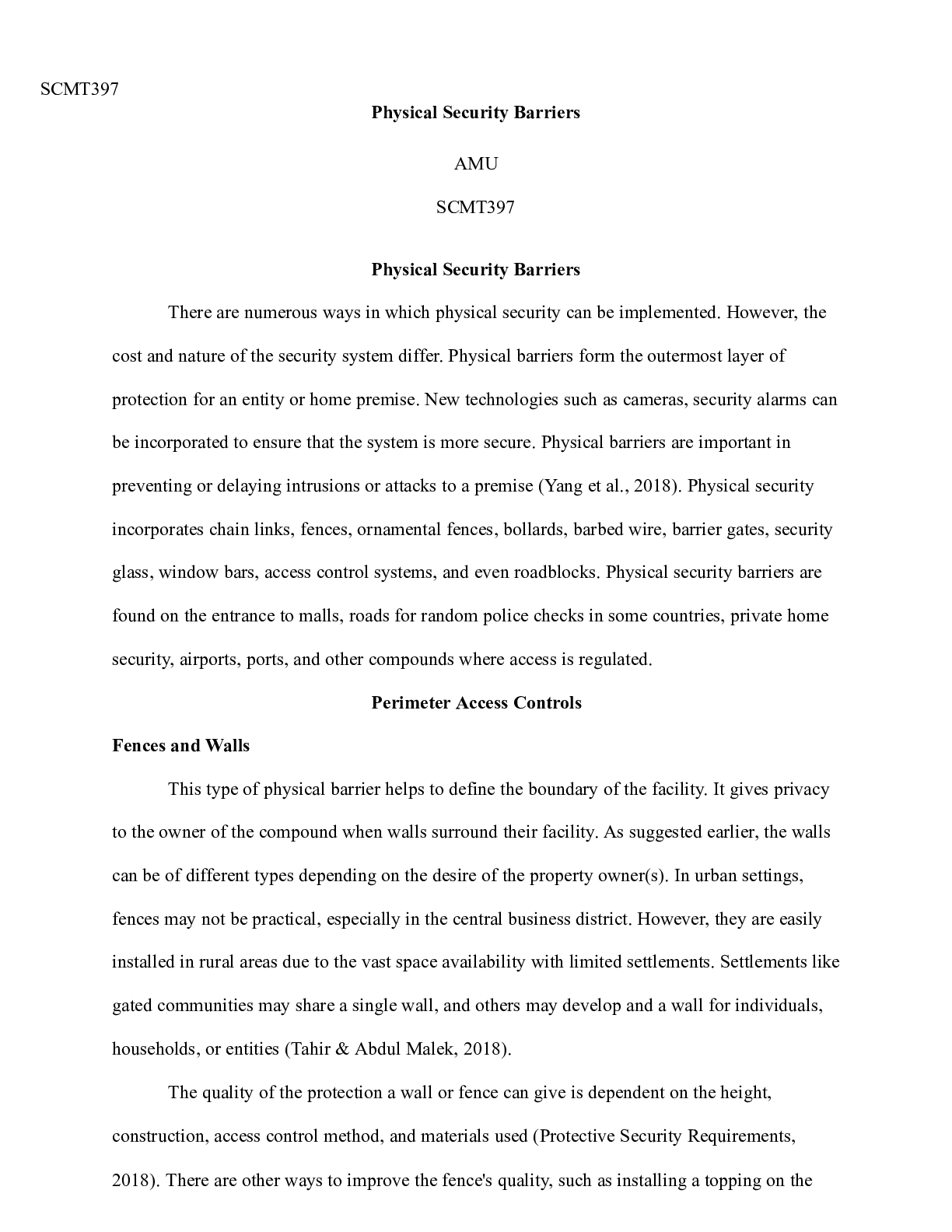 Business > CASE STUDY > Physical Security Barriers.docx SCMT397 Physical Security Barriers AMU SCMT397 Phy (All)