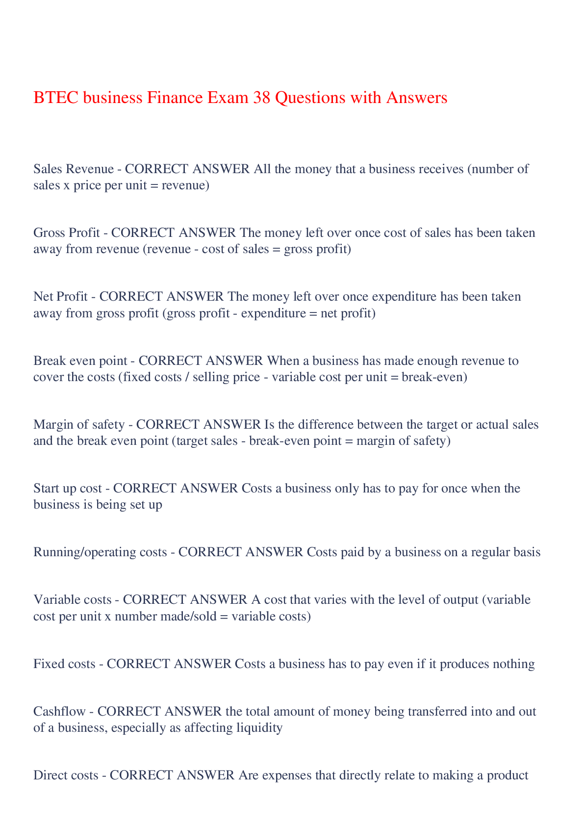 Business > EXAM > BTEC business Finance Exam 38 Questions with Answers ,100% CORRECT (All)