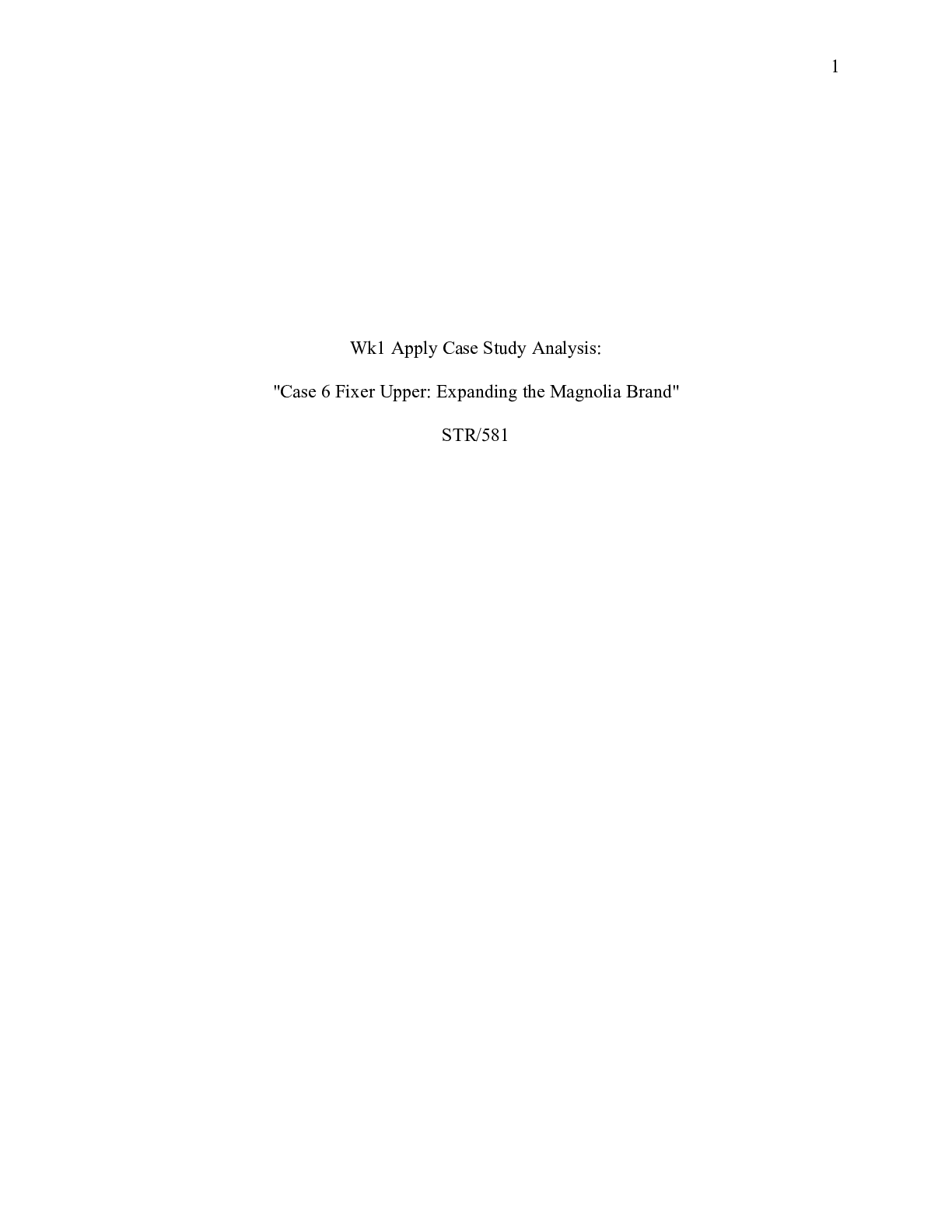 Business > CASE STUDY > STR581_Week_1_Case_Study.docx Wk1 Apply Case Study Analysis: "Case 6 Fixer Upper: Exp (All)