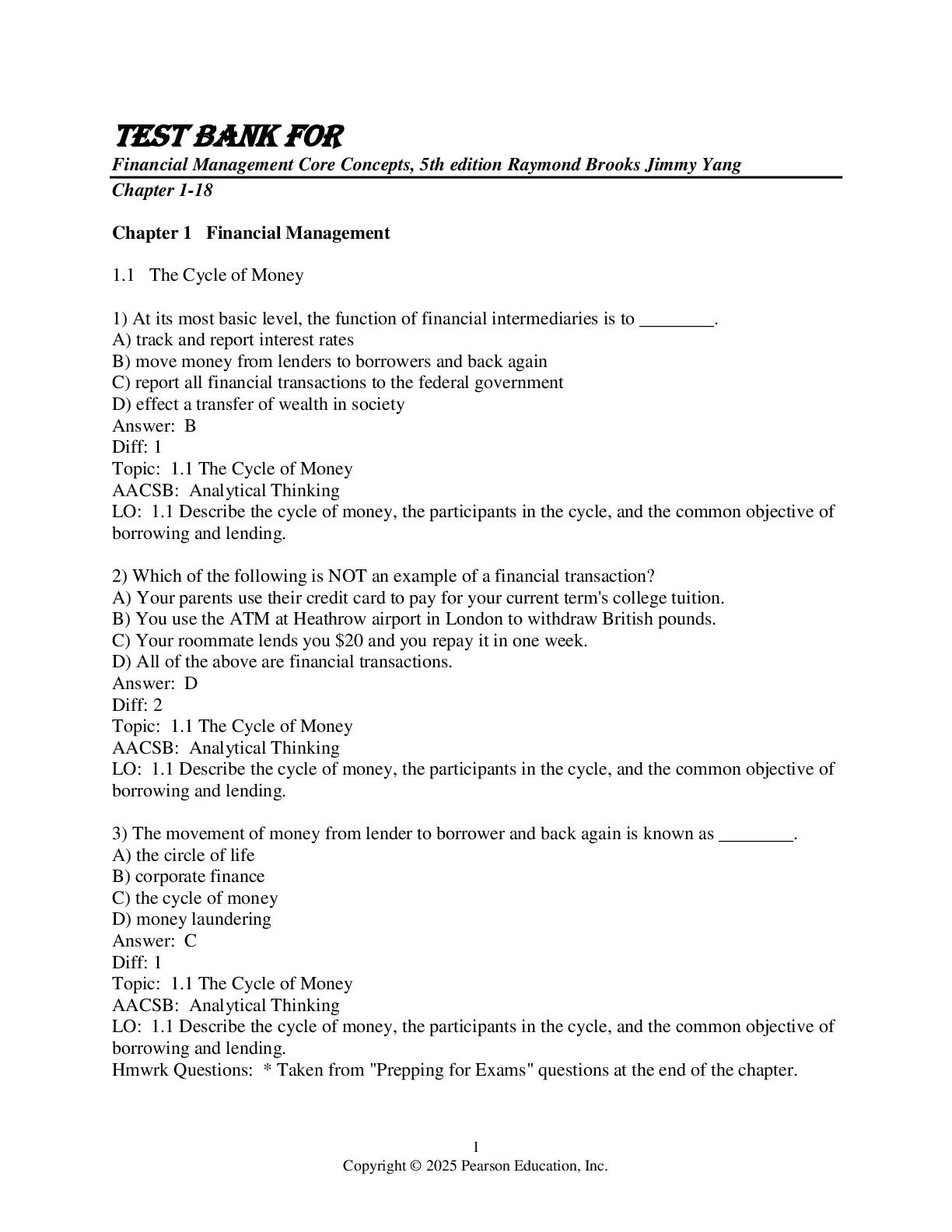 Business > TEST BANKS > Test Bank for Financial Management Core Concepts, 5th edition Raymond Brooks Jimmy Yang (All)