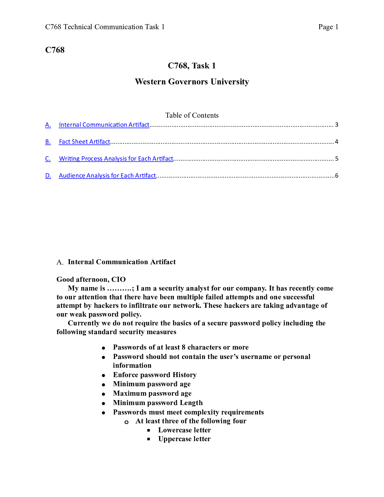 Business > CASE STUDY > C768_Task_1__1_.docx C768, Task 1 Western Governors University Table of Contents A.I (All)