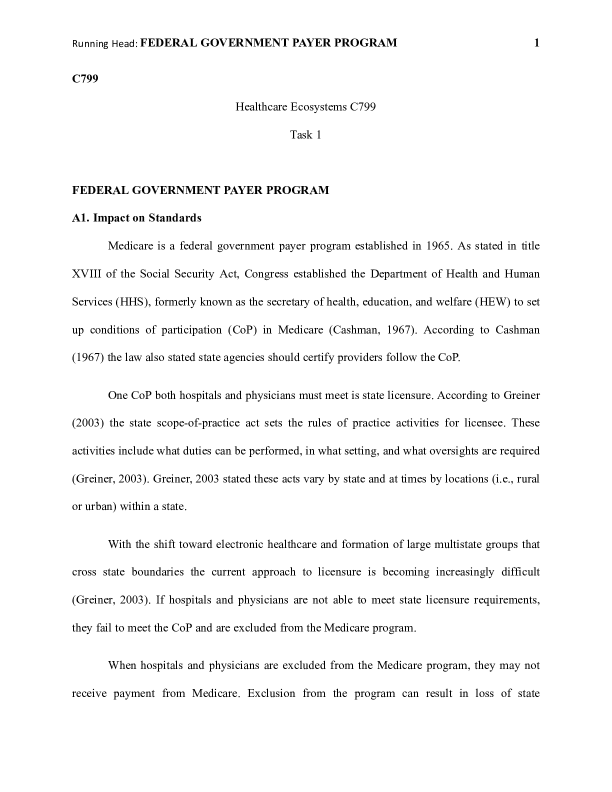 Business > CASE STUDY > C799_Task_1__take_2.docx Task 1 Healthcare Ecosystems A1. Impact on Standards TRICARE (All)