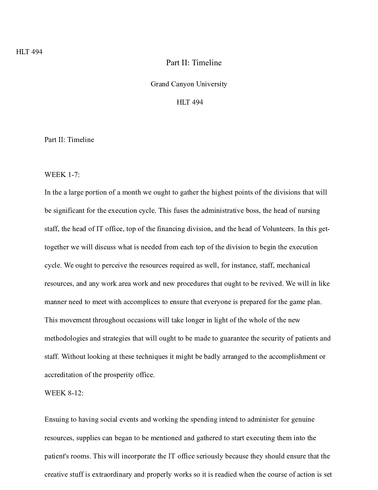 Business > CASE STUDY > Part_II_timeline__1__final.docx(1) HLT 494 Part II: Timeline Grand Canyon University HL (All)