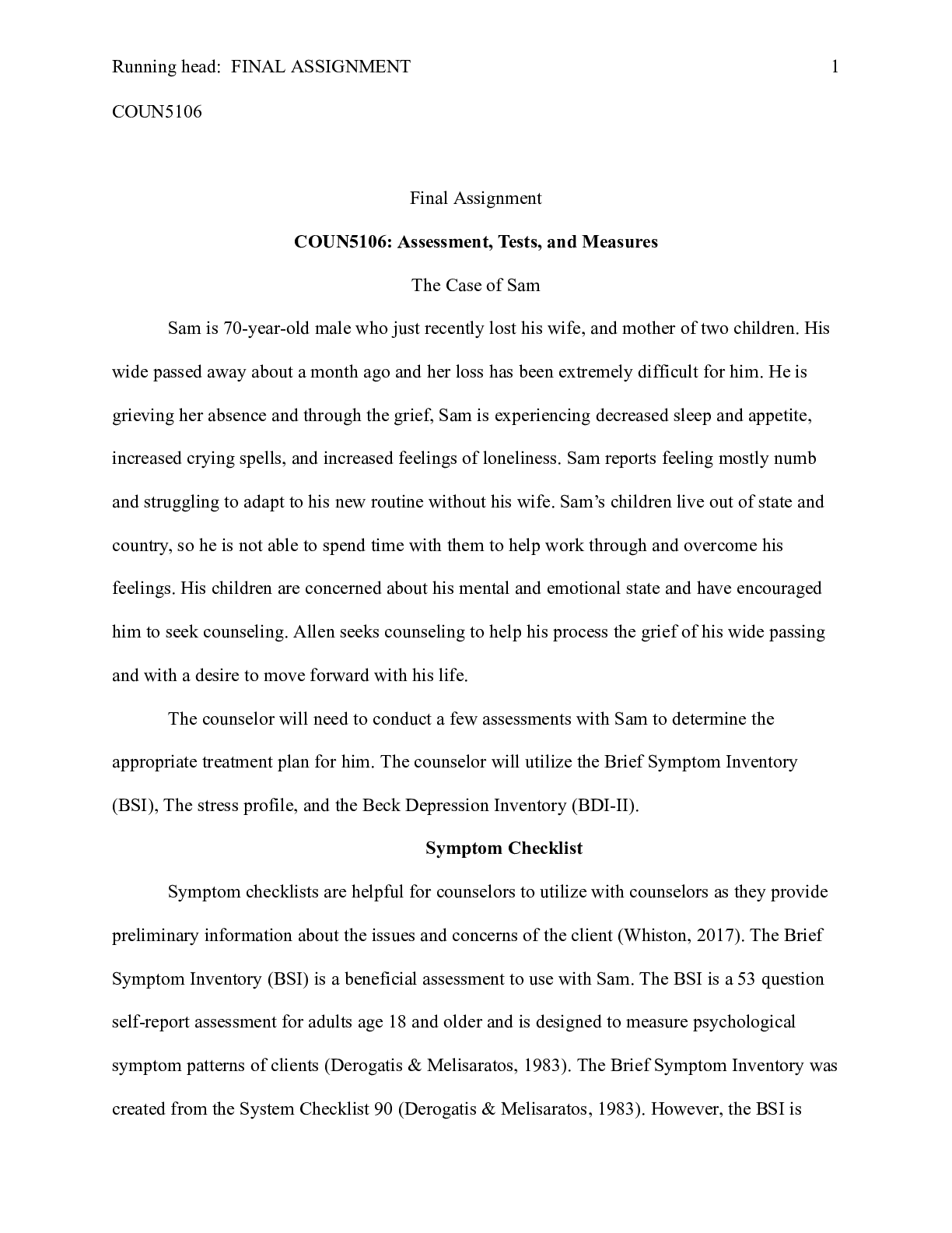 Business > CASE STUDY > coun5106_U09A01_FinalAssignment.doc COUN5106 Final Assignment COUN5106: Assessment, Tes (All)